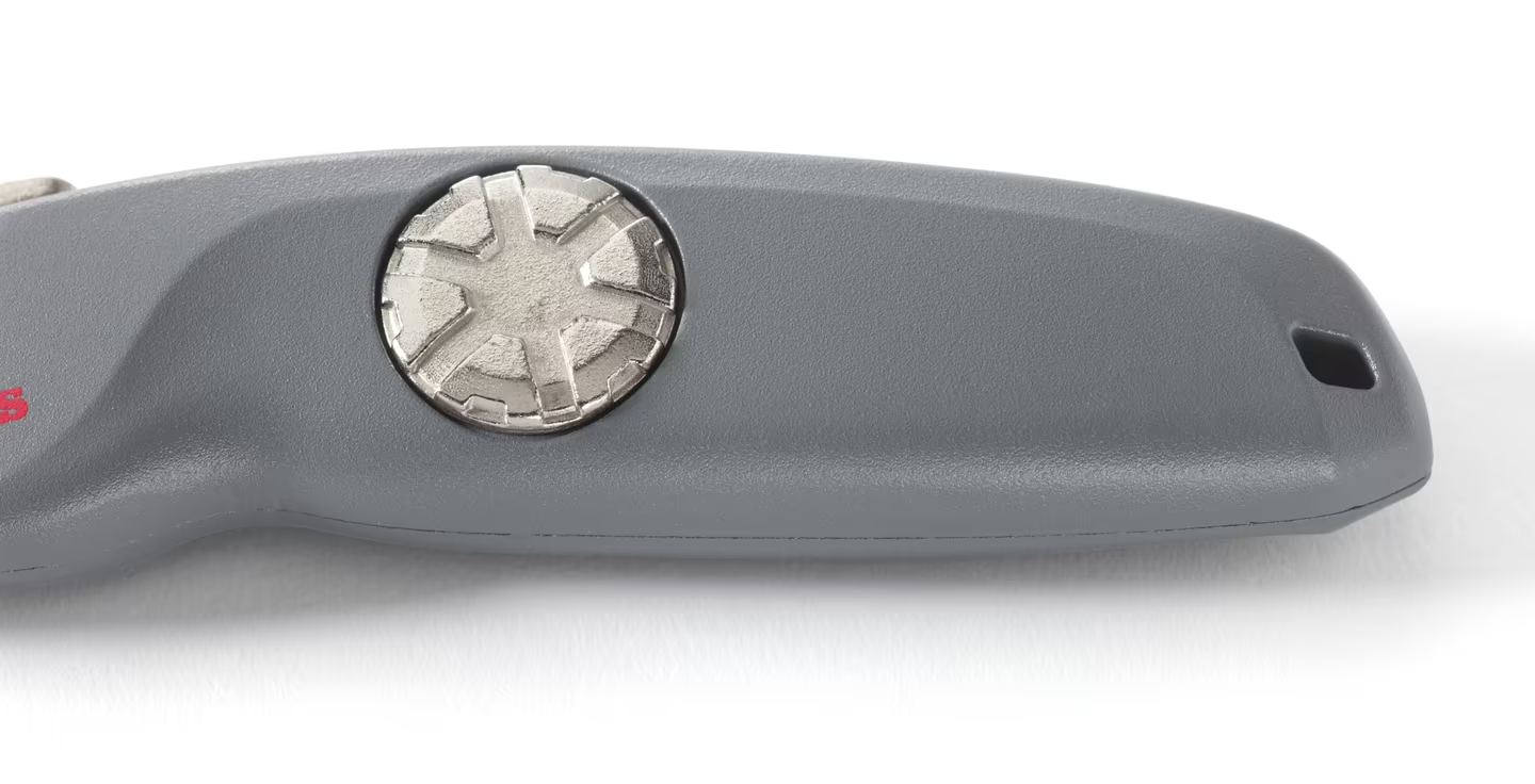 Sturdy and well-balanced utility knife with ergonomic design for best possible safety, comfort and control. The practical screw wheel allow for easy blade change with no tool required. Comes with ten spare allround blades in a practical dispenser stored inside the knife.