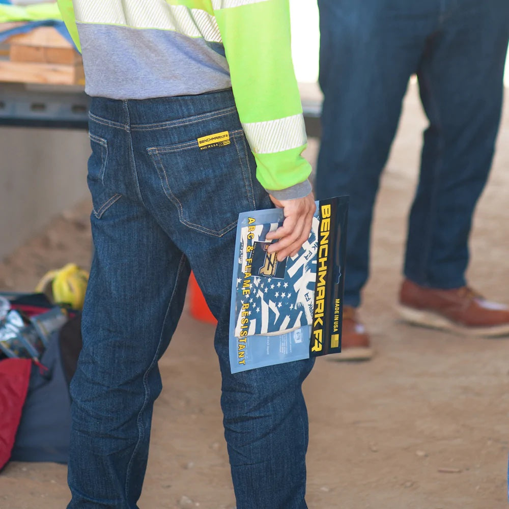 Benchmark FR proudly makes these FR Family Joules Stretch Denim Jeans in the United States, using an advanced blend of Eco shield inherent 6707 fabric. Crucially, this unique composition ensures inherent flame resistance that lasts the garment's life, provided you follow care instructions.